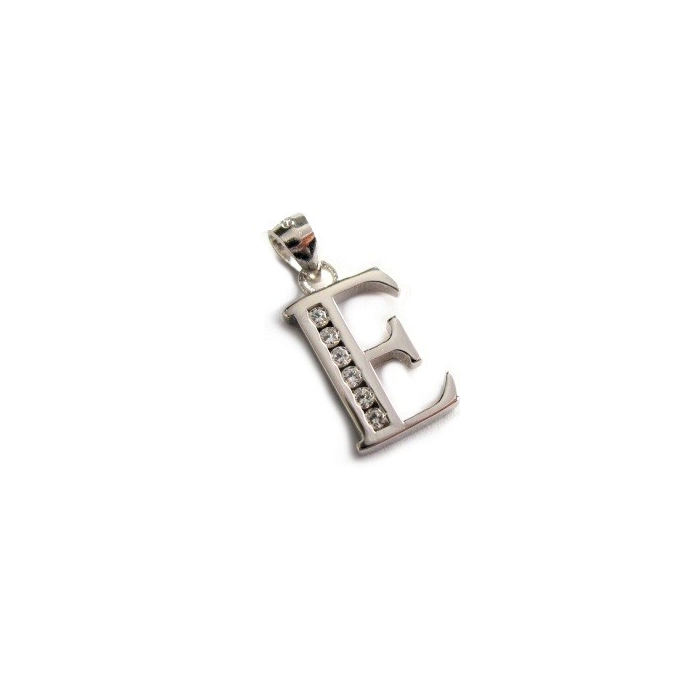 Stříbrný přívěšek písmeno "E" se zirkony Rhodium